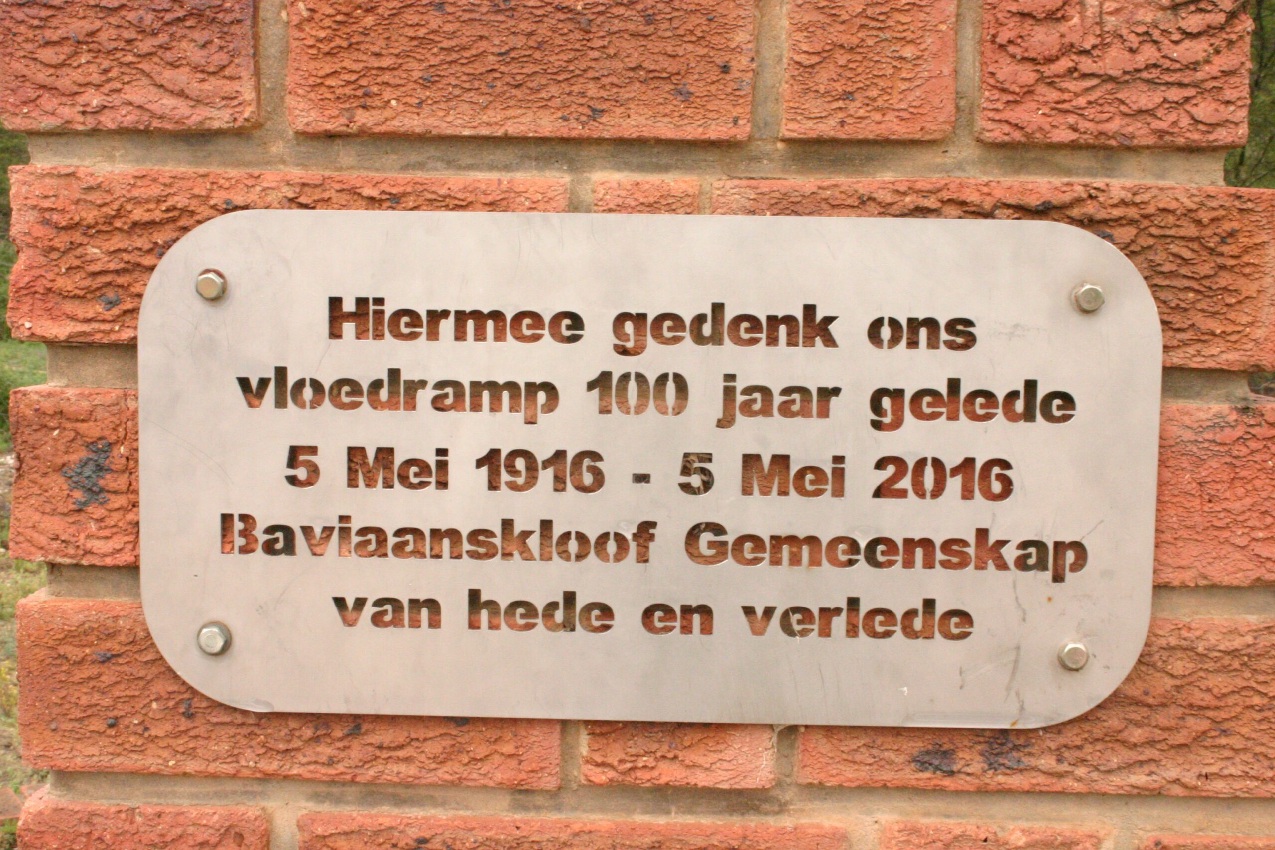 Baviaanskloof plaques to commerate the 1916 flood.